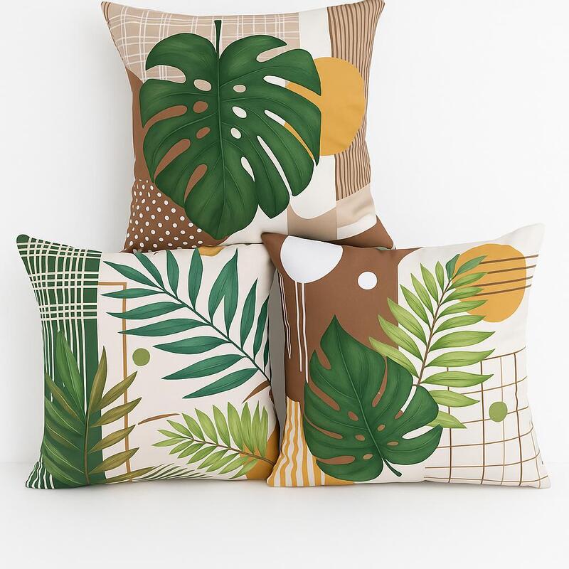 A Kit Capas de Almofada Botânica Boho foi criado para quem deseja transformar a decoração de forma rápida e elegante. Com estampas exclusivas de Costela de Adão e folhagens tropicais, este conjunto une tons terrosos, formas geométricas e o verde vibrante das plantas para criar um ambiente acolhedor e moderno.
